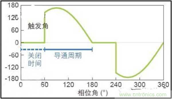 因此前沿切相調(diào)光的特點綜合起來就是:每半周期內(nèi),過零關斷,延時導通至半周期末。