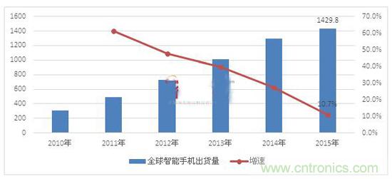 2015年全球智能手機(jī)出貨量保持兩位數(shù)增速,同比增長(zhǎng)10.71%