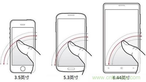 也就是說,最好用的尺寸大約在4-4.5英寸之間,對于超過這些尺寸的手機,除非你的手掌大于常人,否則單手操作都不方便。而目前市面上的手機多為5-5.7英寸之間,比最佳的4-4.5英寸大出不少。