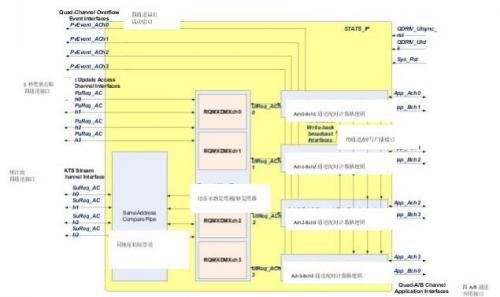 正如模塊圖所示,NPU通過(guò)4x25Gbps鏈路將統(tǒng)計(jì)和處理請(qǐng)求推送到IP中。IP的運(yùn)行頻率為存儲(chǔ)器存取頻率的四分之一,并且使用四條被稱為“通道”的平行數(shù)據(jù)路徑以匹配存儲(chǔ)器帶寬。在存儲(chǔ)接口HP和XP運(yùn)行模式中,端口A作為讀取端口,端口B作為寫入端口。每項(xiàng)統(tǒng)計(jì)請(qǐng)求對(duì)保存在與該請(qǐng)求相關(guān)的獨(dú)特存儲(chǔ)位置中的計(jì)數(shù)器數(shù)據(jù)進(jìn)行讀—修改—寫操作。