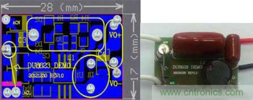 全閉環(huán)控制,檢測(cè)輸出電流,來發(fā)出PWM信號(hào),是真正的恒流電源驅(qū)動(dòng)控制技術(shù)。實(shí)驗(yàn)表明,相對(duì)于其他非閉環(huán)的方案,這種獨(dú)有的閉環(huán)恒流控制技術(shù)使輸出電流精度有了質(zhì)的飛躍,使整機(jī)電源在全電壓、全負(fù)載、電感變化范圍內(nèi)的電流精度達(dá)到行業(yè)內(nèi)目前最高的±0.9%.基于此閉環(huán)控制技術(shù),DU8623集成1A高壓MOSFET,并且根據(jù)某些應(yīng)用要求省略了電解電容,這就提供了一種高恒流精度,低成本、壽命優(yōu)化的產(chǎn)品。
