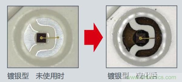 【導讀】“才幾個月的新車,本來高位剎車燈在剎車時燈光高亮,可現在剎車時燈光變暗紅了不知道怎么辦。”相信不少人有這樣的困擾,這是因為LED內部使用的銀受環(huán)境氣體影響被硫化了,顏色變黑,從而造成LED光亮度的降低。近年來LED的使用環(huán)境越來越嚴苛,防止硫化已成為確??煽啃圆豢苫蛉钡囊画h(huán)。為應對這個挑戰(zhàn),ROHM面向汽車領域開發(fā)出首款完全無銀的高亮度紅色LED“SML-Y18U2T”,非常有助于汽車剎車燈等在嚴酷環(huán)境下使用的應用的可靠性高提升。