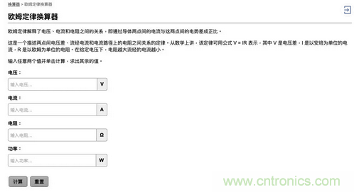 此外,Digi-Key也提供了一個(gè)歐姆定律換算器為客戶提供方便。