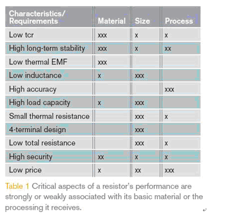 理想的電流檢測電阻應該完全與這些參數無關,當然這樣的電阻是不存在的。實際的電阻特性見表1,包括溫度系數TCR,長期穩(wěn)定性,熱電動勢,負載能力,電感和線性度,其中的部分特性由材料本身決定;部分特性由元件設計決定,還有一些參數決定于生產制程。