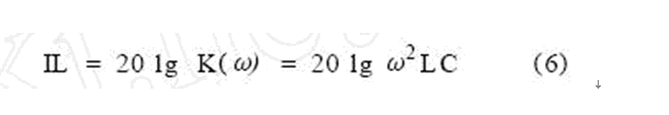 對于小功率的電子設備而言,LmaxCy,max的值通常為100μHμF,這是一個非常小的數(shù)值。以單級LC濾波器為例,為簡化分析,用電壓衰減來代替插入損耗,可得此時插入損耗為: