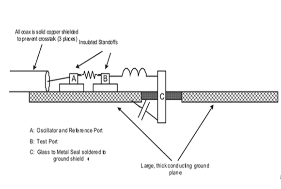 測試電感性能的最有效方法就是將被測試電感放置在最終開關(guān)電源電路上,然后對此電路的效率進行測量。但是,這種測試方法需要有最終電路,不易采用?,F(xiàn)在,有一種相對簡單的測試方法,可以在設(shè)計開關(guān)電源前對電感的磁芯損耗進行測試(在其設(shè)定的開關(guān)頻點上)。首先,將磁芯串連放置在低損耗電容介質(zhì)上(比如鍍銀云母)。然后,用一系列共振模驅(qū)動。其中介質(zhì)的電容值需要與被測電感的開關(guān)頻率一致。最后采用網(wǎng)絡(luò)分析儀來完成整個測試過程(信號發(fā)生器加上一個射頻伏特計或者功率計也可以完成測試)。測試設(shè)備的結(jié)構(gòu)如圖2所示。