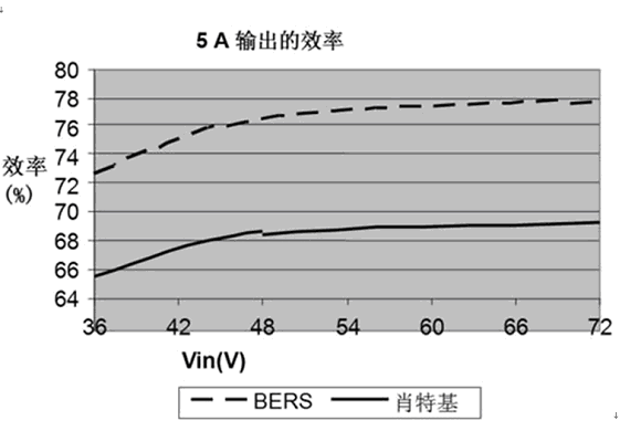 圖2 肖特基與BERS的電源轉(zhuǎn)換器效率比較