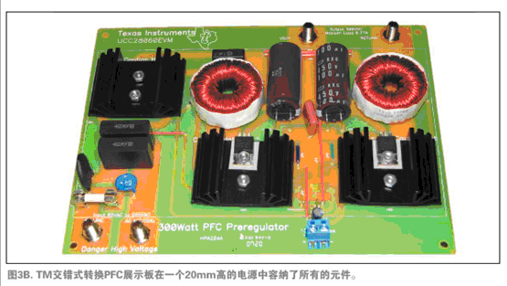 過渡模式升壓PFC成功地用于300瓦的大型電源中。在較高的功率時,功率電感過大而且也不太實(shí)際。同樣,輸入EMI濾波器也更為昂貴。