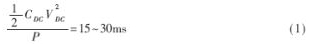 根據(jù)所選擇的電壓等級,直流側(cè)電容電壓等級選定為450V。其容量則一般使用如下經(jīng)驗(yàn)公式進(jìn)行計算: