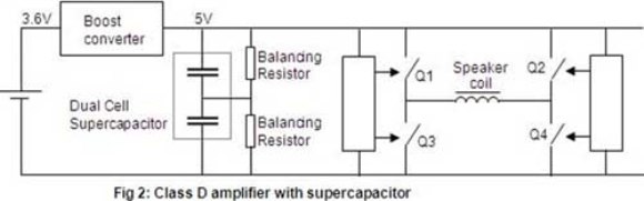 圖2:帶有超級電容的D類放大器架構(gòu)。