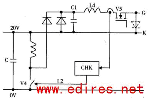 IGCT開通之后陽極電流不會馬上流通。在電流源逆變器中二極管的關(guān)斷有時會延遲電流換向進(jìn)入工作中的IGCT。開通脈沖的第二部分設(shè)計符合換向的要求。開通脈沖產(chǎn)生之前先斷開圖4中的開關(guān)V6。