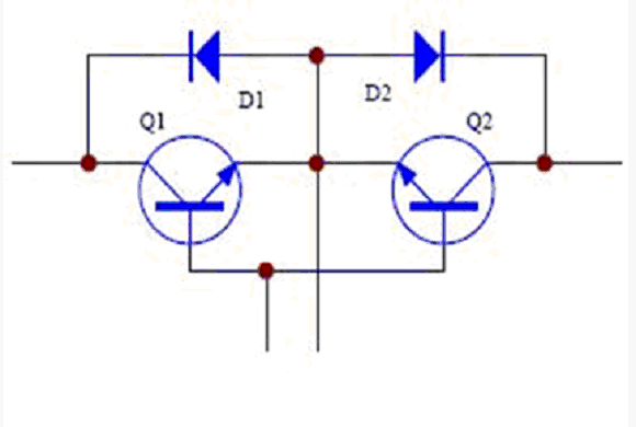 旁路開關(guān)常使用繼電器和可控硅。繼電器在中小功率的UPS 中廣泛應(yīng)用。優(yōu)點是控制簡單,成本低,缺點是繼電器有轉(zhuǎn)換時間,還有就是機(jī)電器件的壽命問題。可控硅常見于中大功率UPS 中。優(yōu)點是控制電流大,沒有切換時間。但缺點就是控制復(fù)雜,且由于可控硅的觸發(fā)工作特性,在觸發(fā)導(dǎo)通后要在反向偏置后才能關(guān)斷,這樣就會產(chǎn)生一個最大10ms的環(huán)流電流,如圖2。如果采用IGBT,如圖3,則可以避免這個問題,使用IGBT 有控制簡單的優(yōu)點,但成本較高。其工作原理為:當(dāng)輸入為正半周時,電流流經(jīng)Q1、D2,負(fù)半周時電流流經(jīng)D1、Q2。