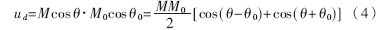 式(4)中第二項(xiàng)是一個(gè)倍頻的交流成分,若θ-θ0是常量,第一項(xiàng)則為直流成分。而且,若θ-θ0接近于-π/2,則cos(θ-θ0)=sin(θ-θ0+π/2)≈θ-θ0+π/2。故對于ud的直流成分來說,模擬相乘器相當(dāng)于一個(gè)相位的減法器。