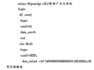 數(shù)據寫入控制程序用 Verilog語言編寫,在QuartusⅡ6.0環(huán)境下編寫編譯并配置器件引腳。由于源程序非常大,這里只給出了R寄存器賦值的部分程序代碼。