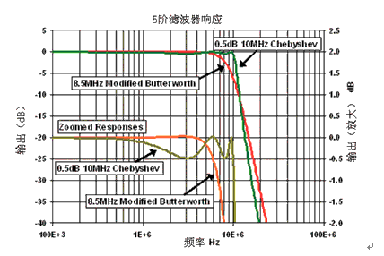 因此,我們必須在電平平坦度、截止頻率、衰減和群延遲差異間取得平衡,以獲得合適的視頻濾波器。大家一致認(rèn)為,巴特沃思濾波器對(duì)消費(fèi)類電子視頻來說是一種較好的平衡型濾波器,電平響應(yīng)實(shí)現(xiàn)了最大的平坦度,衰減率適當(dāng),群延遲也不錯(cuò)。它雖說不上是最理想的,但通常對(duì)系統(tǒng)而言已經(jīng)足夠好了。