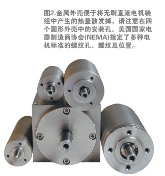 外殼散熱:對于特定的電機(jī)尺寸和扭矩負(fù)載,無刷直流電機(jī)需要在比其它兩種電機(jī)更低的內(nèi)部溫度下工作。無刷直流電機(jī)的外殼溫度通常與電機(jī)繞組溫度直接相關(guān),由于有刷直流電機(jī)具有較高的內(nèi)部熱阻抗,其穩(wěn)定狀態(tài)的外殼溫度通常比繞組溫度低得多(但這會造成轉(zhuǎn)子發(fā)熱);混合式步進(jìn)電機(jī)經(jīng)常會發(fā)熱,設(shè)計師應(yīng)該設(shè)計好產(chǎn)品,防止人員接觸發(fā)熱的電機(jī)。