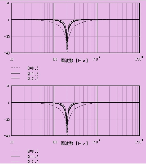 陷波濾波器又稱為帶阻濾波器,可對(duì)任意頻率信號(hào)有效地阻斷,甚至可使諧振點(diǎn)的增益降到零。當(dāng)諧振峰值高而頻率帶寬窄時(shí)適用。通過(guò)改變品質(zhì)因數(shù)(q值)使衰減特性變化急劇或平緩。頻率設(shè)置范圍從50~1500hz,q值設(shè)置范圍從0.5~2.5(默認(rèn)值1.5)。圖2示出了陷波濾波器設(shè)置圖。