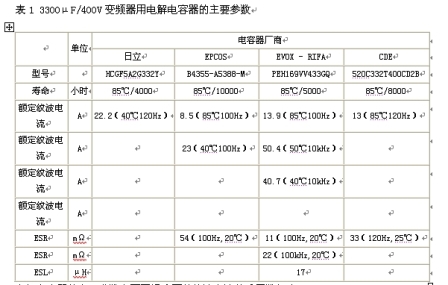 作為變頻器/逆變器的整流濾波電容器,其最主要的參數(shù)是額定電壓、電容量,通常采用電解電容器作為整流濾波電容器。但是電解電容器最大的缺點(diǎn)就是使用壽命問題,特別是在高溫條件下尤為明顯,電解電容器的壽命直接影響著變頻器/逆變器的使用壽命。在實(shí)際應(yīng)用中因?yàn)檫^大的紋波電流在濾波用電解電容器的ESR產(chǎn)生熱而是濾波用電解電容器的壽命大大減少,通常這個(gè)紋波電流確實(shí)無(wú)法見效的。