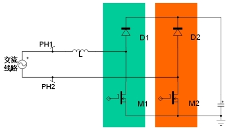 圖3:傳統(tǒng)的無(wú)橋PFC結(jié)構(gòu)示意圖。