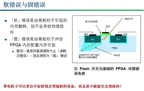 他指出對(duì)于Flash工藝器件來說,它對(duì)固錯(cuò)誤有免疫性,因?yàn)镕lash晶體管不會(huì)隨意翻轉(zhuǎn),雖然有瞬態(tài)翻轉(zhuǎn),但瞬態(tài)過了以后會(huì)恢復(fù)生產(chǎn)。