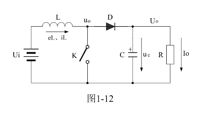 當(dāng)控制開關(guān)K接通時,輸入電源Ui開始對儲能電感L加電,流過儲能電感L的電流開始增加,同時電流在儲能電感中也要產(chǎn)生磁場;當(dāng)控制開關(guān)K由接通轉(zhuǎn)為關(guān)斷的時候,儲能電感會產(chǎn)生反電動勢,反電動勢產(chǎn)生電流的方向與原來電流的方向相同,因此,在負載上會產(chǎn)生很高的電壓。