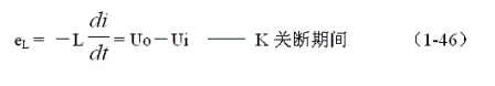 式中負號表示反電動勢eL的極性與(1-43)式相反,即:K接通與關(guān)斷時電感的反電動勢的極性正好相反。對(1-46)式進行積分得: