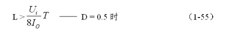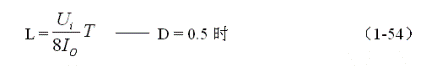 (1-54)和(1-55)式,就是計算并聯(lián)式開關(guān)電源儲能電感的公式。同理,(1-54)和(1-55)式的計算結(jié)果,只給出了計算并聯(lián)開關(guān)電源儲能濾波電感L的中間值,或平均值,對于極端情況可以在平均值的計算結(jié)果上再乘以一個大于1的系數(shù)。