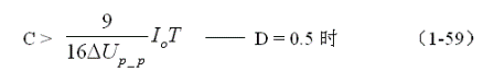同理,(1-58)和(1-59)式的計算結(jié)果,只給出了計算并聯(lián)式開關(guān)電源儲能濾波電容C的中間值,或平均值,對于極端情況可以在平均值的計算結(jié)果上再乘以一個大于1的系數(shù)。