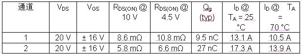例如,常規(guī)雙MOSFET的PowerPAK 1212-8的導(dǎo)通電阻大約是30mΩ,最大電流不到10A,因此不是可行的方案。單MOSFET的PowerPAK 1212-8的導(dǎo)通電阻降至5mΩ左右。SiZ700DT中低邊溝道的MOSFET具有類似的導(dǎo)通電阻,在10V和4.5V電壓下的導(dǎo)通電阻分別為5.8mΩ和6.6mΩ,在+25℃和+70℃溫度下的最大電流分別為17.3A和13.9A。除此以外,高邊溝道的MOSFET在10V和4.5V電壓下的導(dǎo)通電阻分別為8.6mΩ和10.8mΩ,在+25℃和+70℃溫度下的最大電流分別為13.1A和10.5A。