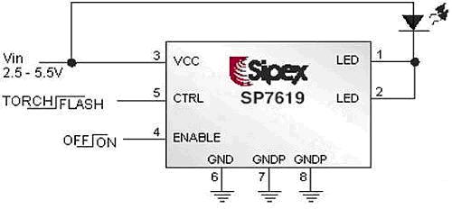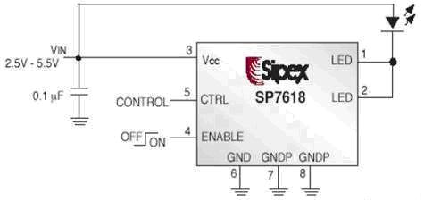 另外,隨著LED技術(shù)的改進(jìn),F(xiàn)lash LED的工作電壓(Vf)也會越來越低,Vf值在3.4V以下的Flash LED很快會推出,而目前手機(jī)鋰電池的關(guān)機(jī)電壓一般在3.5V,所以日后在閃光燈的解決方案中將不再需要升壓方式,因此Sipex公司推出一批線性的控制 器件,如SP7618和SP7619/SP7619A。