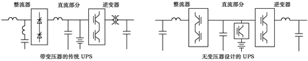 圖1傳統(tǒng)UPS與無變壓器UPS結構示意圖