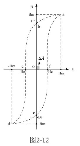 由(2-24)式很容易看出,虛線a-b-c-d-e-f-a圈起來(lái)的面積所對(duì)應(yīng)的就是磁滯損耗的能量;即:磁滯損耗能量的大小與磁滯回線的面積成正比。