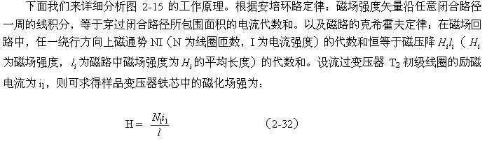 (2-34)式表明:在圖2-15中,任一時刻取樣電壓u1均與磁場強(qiáng)度H成正比,因此,電壓u1可以作為示波器X軸輸入電壓,用示波器的水平方向來顯示磁場強(qiáng)度H。
