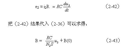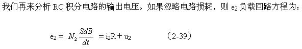 由(2-35)和(2-36)式可以看出,感應(yīng)電動勢是磁通密度對時間的微分,那么磁通密度就應(yīng)該是感應(yīng)電動勢對時間的積分。因此,對磁通密度B進(jìn)行顯示必須由一個積分電路組成。在圖2-15中,RC電路正好有這種積分特性。