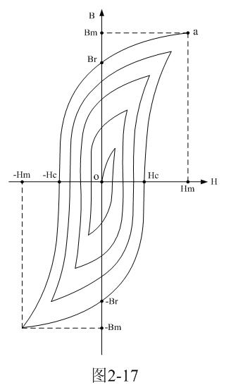 如果再使磁場強(qiáng)度H逐漸退到零,則與此同時B也逐漸減少。然而H和B對應(yīng)的曲線軌跡并不沿原曲線軌跡a-0返回,而是沿另一曲線下降到Br,這說明當(dāng)H下降為零時,鐵磁物質(zhì)中仍保留一定的磁性,這種現(xiàn)象稱為磁滯,Br稱為剩磁。將磁場反向,再逐漸增加其強(qiáng)度,直到H=-Hc,磁通密度消失,這說明要消除剩磁,必須施加反向磁場Hc。Hc稱為磁矯頑力。
