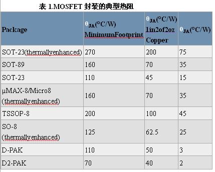 注:同樣封裝類型的不同器件,以及不同制造商出品的相似封裝的熱阻各不相同,和封裝的機械特性、管芯尺寸和安裝及綁定方法有關(guān)。需仔細考慮MOSFET數(shù)據(jù)資料中的熱信息。