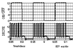可控脈沖模式,也可稱為跳周期控制模式(SkipCycleMode)是指當處于輕載或待機條件時,由周期比PWM控制器時鐘周期大的信號控制電路某一環(huán)節(jié),使得PWM的輸出脈沖周期性的有效或失效,如圖6所示。這樣即可實現恒定頻率下通過減小開關次數,增大占空比來提高輕載和待機的效率。該信號可以加在反饋通道,PWM信號輸出通道,PWM芯片的使能引腳(如LM2618,L6565)或者是芯片內部模塊(如NCP1200,FSD200,L6565和TinySwitch系列芯片)。