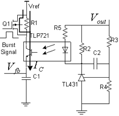 另外對于有使能腳的PWM控制器,如L6565等,用可控脈沖信號控制使能腳使控制芯片有效或失效,可以實現BurstMode,上述BurstSignal可由圖1中所示的遲滯比較器產生。