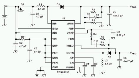 欲提供電源給OLED顯示器,輸出電壓漣波必須很小,開關(guān)頻率也必須固定,才能將OLED顯示器的畫面失真和交互耦合效應(yīng)減至最少。就此而言,采用1.38MHz固定頻率PWM機(jī)制的TPS6513x,正是提供電源給OLED顯示器的理想選擇。雖然在負(fù)載電流范圍內(nèi),提供高精確度的穩(wěn)壓輸出對(duì)于電壓驅(qū)動(dòng)的液晶顯示器特別重要,但它對(duì)于電流驅(qū)動(dòng)的OLED顯示器并不會(huì)構(gòu)成太大問題。