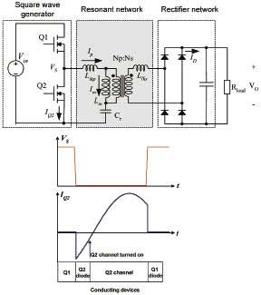 圖4LLC諧振轉(zhuǎn)換器模塊示意圖和零電壓開關(guān)波形