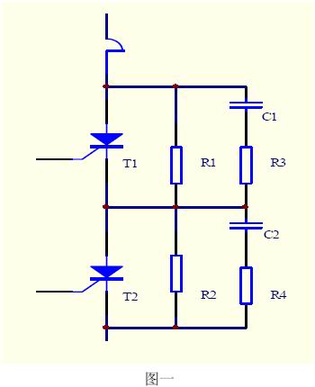 通常使用兩只晶閘管串聯(lián)工作以解決單只晶閘管耐壓不足的問題。這就需要解決晶閘管的工作電壓平均分配問題,包括靜態(tài)均壓與動態(tài)均壓。靜態(tài)均壓可采用無感電阻串聯(lián)分壓的方式解決;動態(tài)均壓比較復雜,這是因為:元件參數(shù)dv/dt的差異以及反向恢復時間的差異導致開通與關斷過程中元件承受的電壓分配不均,極端情況可使支路電壓全部加在一只晶閘管上。