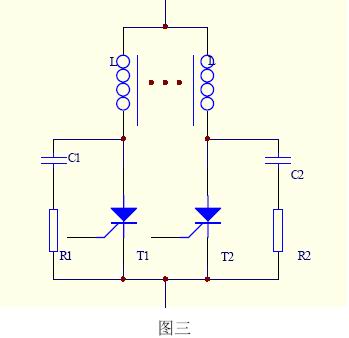 通常采取的辦法是:1)采用共軛電感,以保證動態(tài)均流;2)并聯(lián)RC電路以吸收浪涌電壓;3)盡量選用通態(tài)壓降一致的晶閘管并聯(lián)工作;4)嚴格安裝工藝,保證各支路分布電感盡量一致,如圖三所示