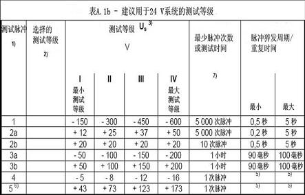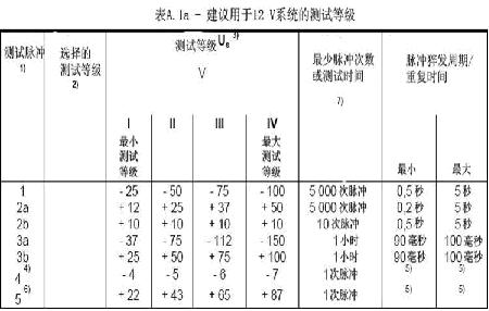 圖2:ISO-7637-2中用于12V/24V系統(tǒng)的測試等級