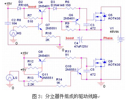 B.分立器件驅(qū)動(dòng)電路用的器件較多,可靠性相對沒有半橋芯片的驅(qū)動(dòng)電路高。但前提條件是半橋驅(qū)動(dòng)芯片的驅(qū)動(dòng)電路要設(shè)計(jì)合理。
