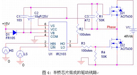 2.2 半橋驅(qū)動(dòng)芯片組成的驅(qū)動(dòng)電路