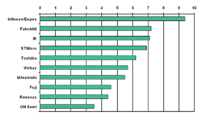 據(jù)2007年在美國舉辦的APEC(應(yīng)用功率電子會議)會議給出的有關(guān)數(shù)據(jù)指出,全球電源市場按品牌劃分如圖1所示(資料來源:2007APEC會議IMS調(diào)研機構(gòu)給出的有關(guān)數(shù)據(jù)(2005年全球電源市場按品牌所占的市場份額%劃分))。