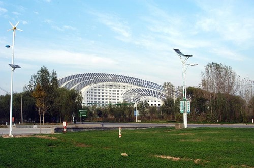 “日月壇-微排大廈”是2010年第四屆世界太陽城大會(huì)的主會(huì)場(chǎng)。它把太陽能綜合利用技術(shù)與建筑節(jié)能技術(shù)相結(jié)合,不但完善了太陽能應(yīng)用技術(shù)標(biāo)準(zhǔn)體系、研發(fā)了一批具有自主知識(shí)產(chǎn)權(quán)的太陽能系列產(chǎn)品,還為太陽能規(guī)?;茝V應(yīng)用提供了寶貴的技術(shù)支持,整體突破了普通建筑常規(guī)能源消耗巨大的瓶頸,綜合應(yīng)用了多項(xiàng)太陽能新技術(shù),如吊頂輻射采暖制冷、光伏發(fā)電、光電遮陽、游泳池節(jié)水、雨水收集、中水處理系統(tǒng)、滯水層跨季節(jié)蓄能等技術(shù),使多項(xiàng)節(jié)能技術(shù)發(fā)揮應(yīng)用到極致。