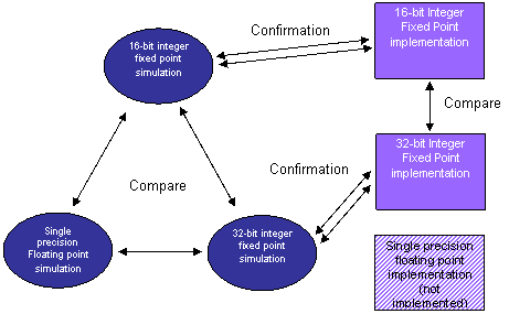 從圖中數(shù)值性能的比較可以看出,16位定點系統(tǒng)有若干個偽瞬態(tài) (false transient) 與振鈴,而32 位系統(tǒng)則沒有這些現(xiàn)象。32 位單精度浮點與32 位定點的結(jié)果非常相近。