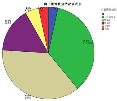 • 出口下降最嚴(yán)重程度5-6成者占17.8%,但35.6%已全部恢復(fù)