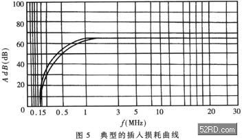 插入損耗用分貝(dB)表示,分貝值愈大,說明抑制噪聲干擾的能力愈強。鑒于理論計算比較煩瑣且誤差較大,通常是由生產(chǎn)廠家進行實際測量,根據(jù)噪聲頻譜逐點測出所對應的插入損耗,然后繪出典型的插入損耗曲線,提供給用戶。